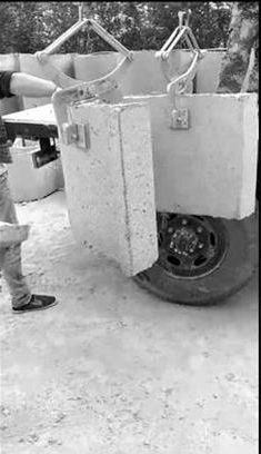 32寸链条石材吊夹搬运吊装混凝土压缩块使用案例。