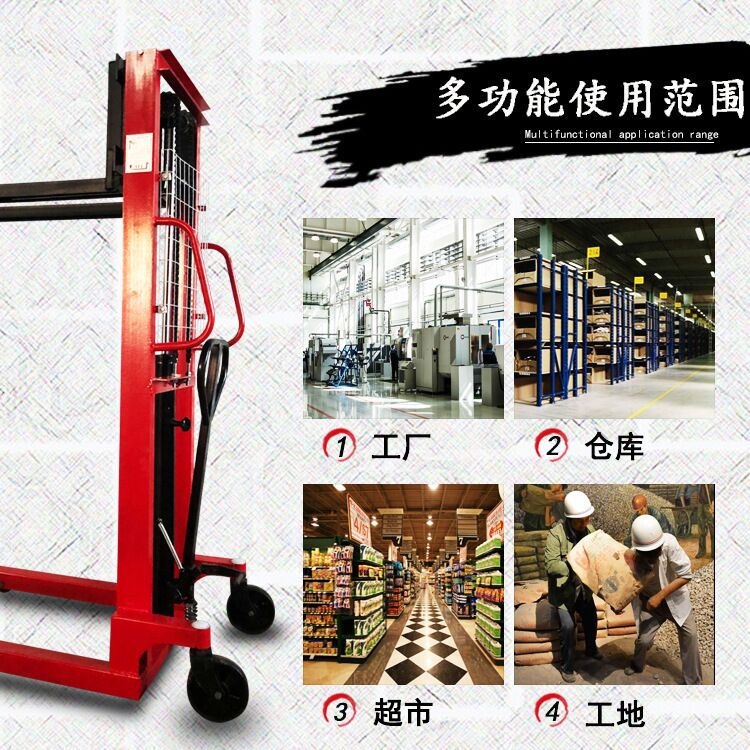 手动式堆高车使用范围广泛,大多数形态结构稳定的重物都可以搬运。