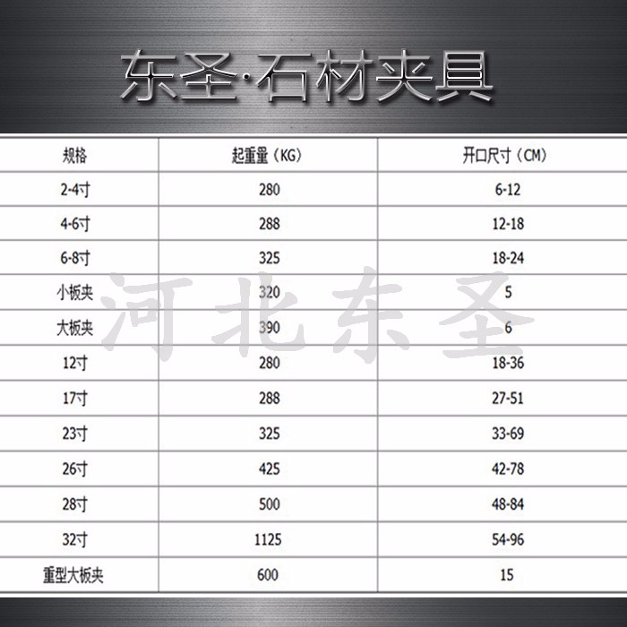 查看详情河北东圣吊索具大圣在此提醒各位石材吊夹使用客户:勿只看重价格方面微小差距(此观点并非支持购买石材夹具越贵越好)正规吊石材夹板厂家,正规发票,正规生产更为重要。